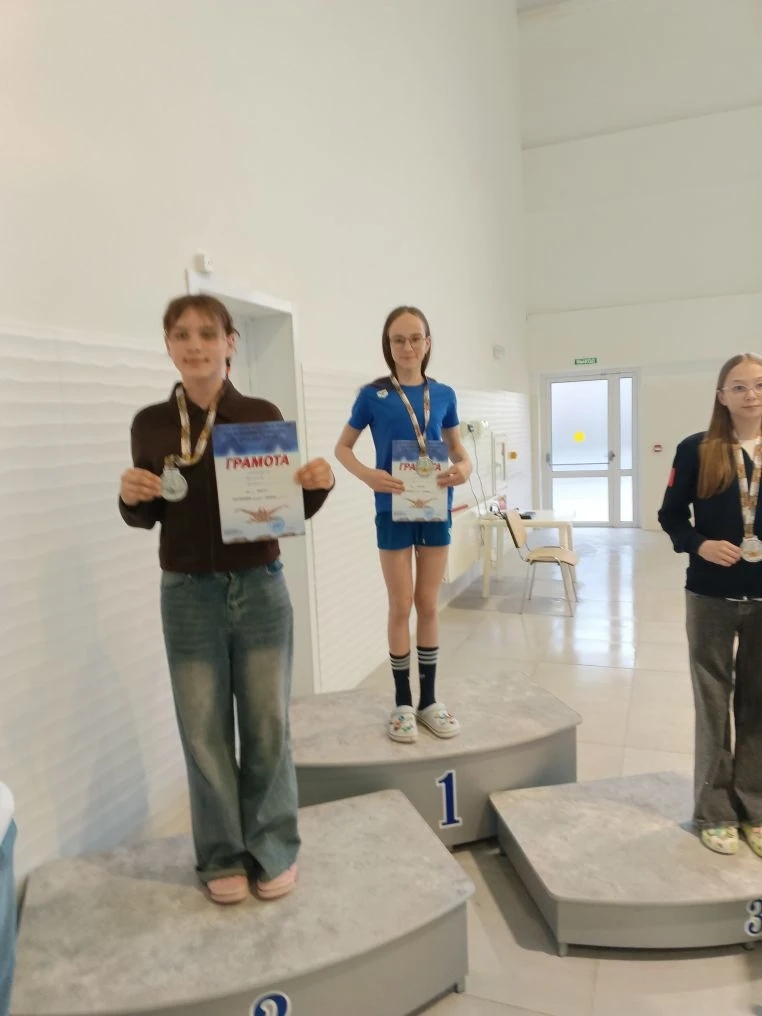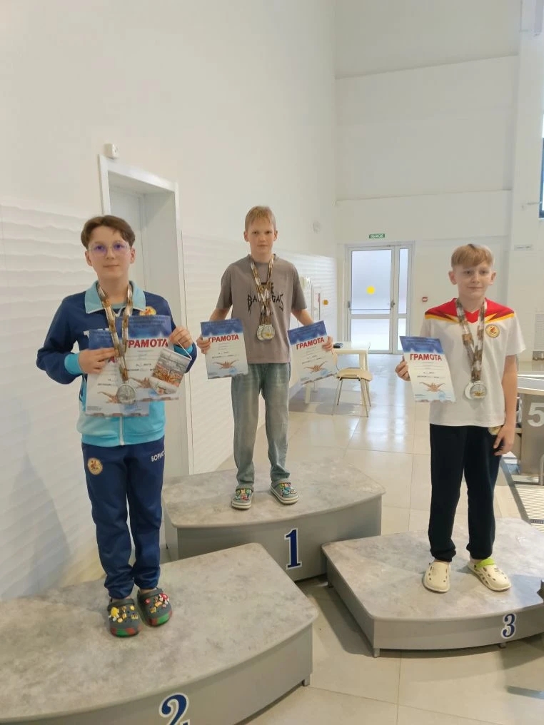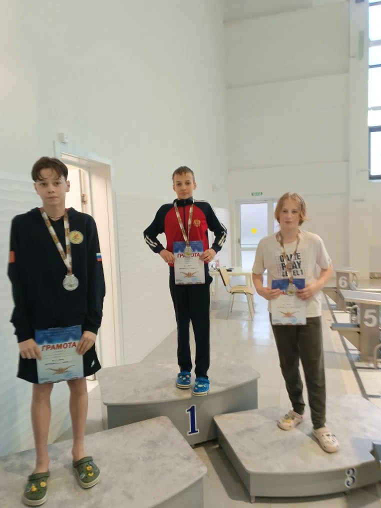 3 место?- Маслова Василиса - 200 м к/пл., Шрам Арсений- 100 м в/с, Тишутин Артур - 200 м к/пл.