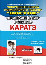 Спортивная школа олимпийского резерва «Восток» объявляет набор в секцию каратэ.
