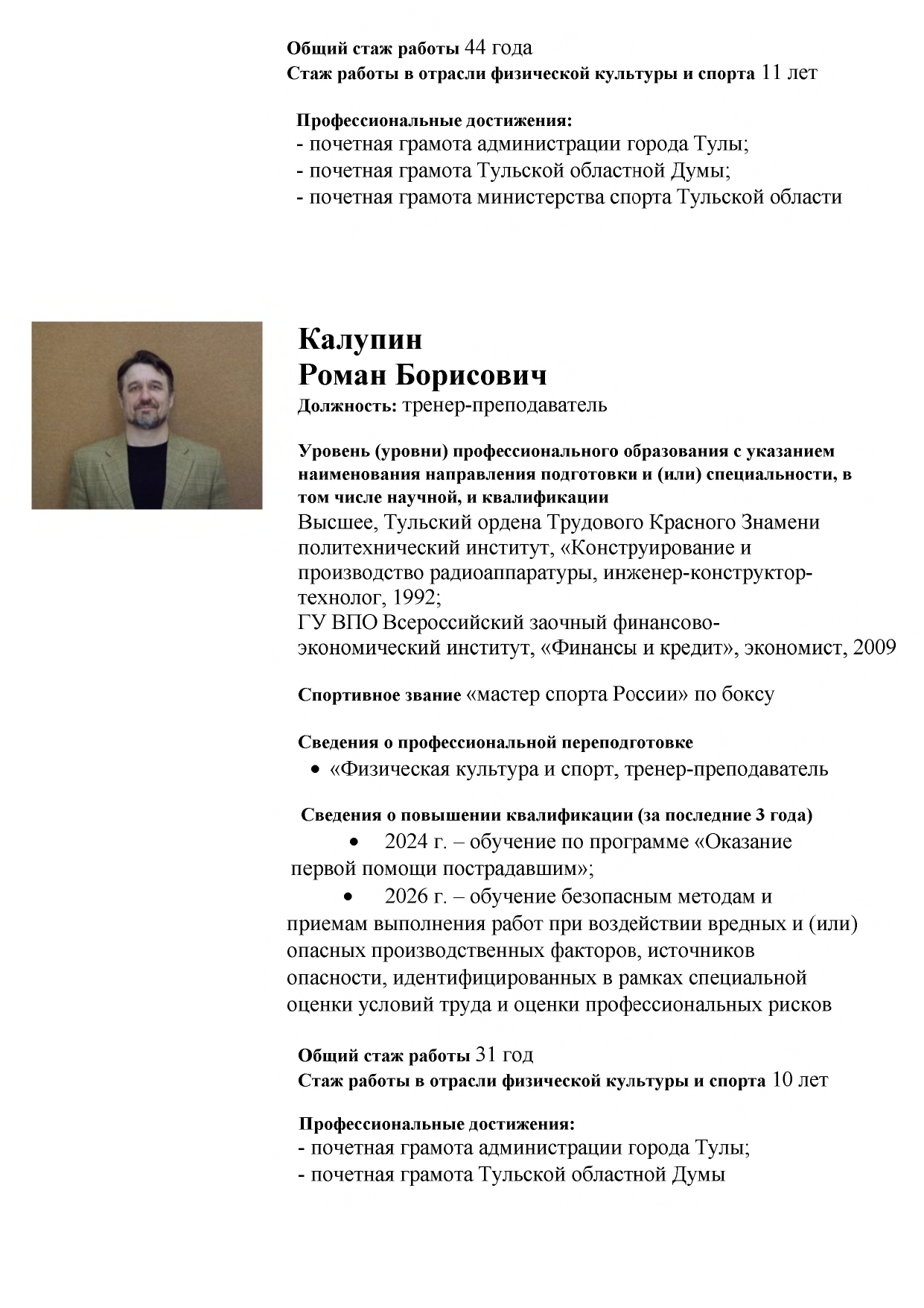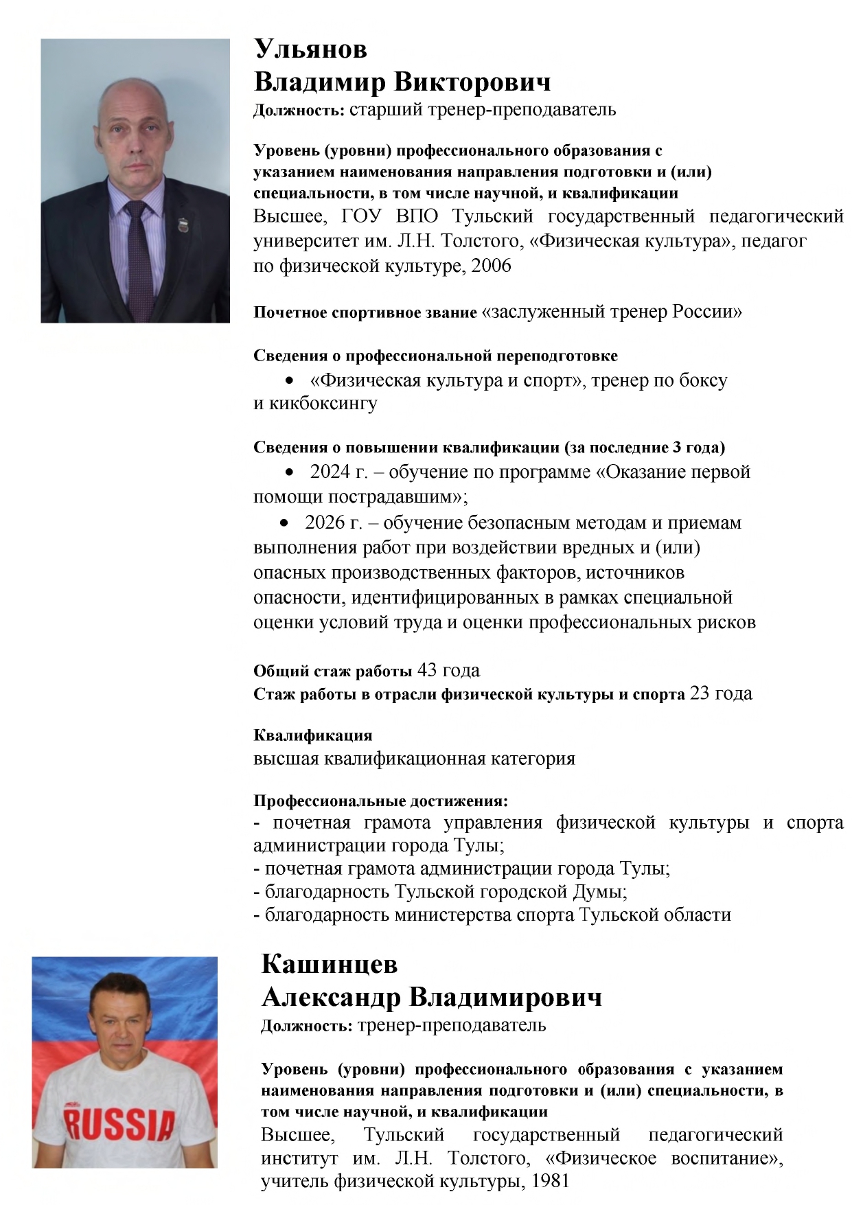 • Педагогический состав
