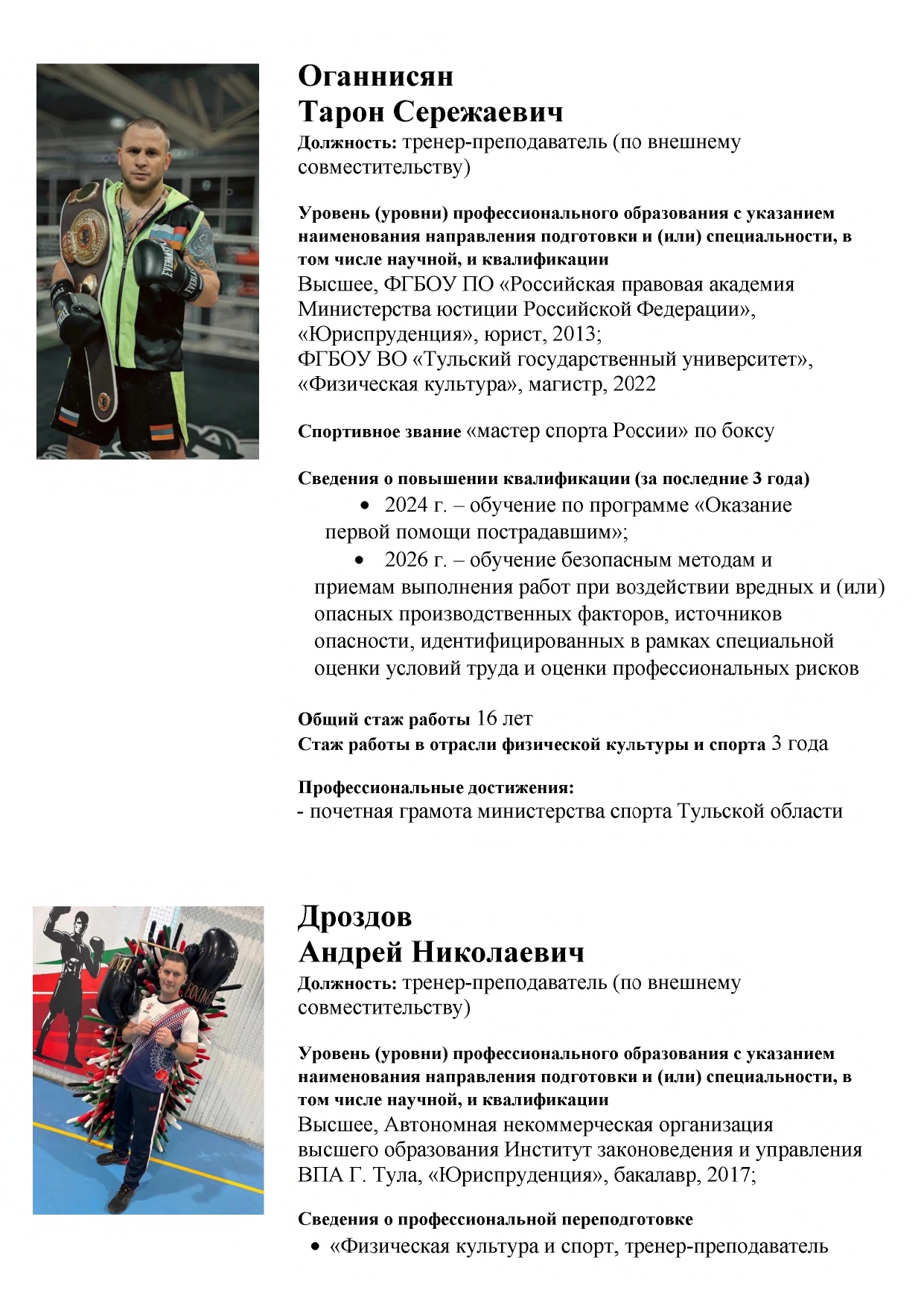 • Тренерский состав