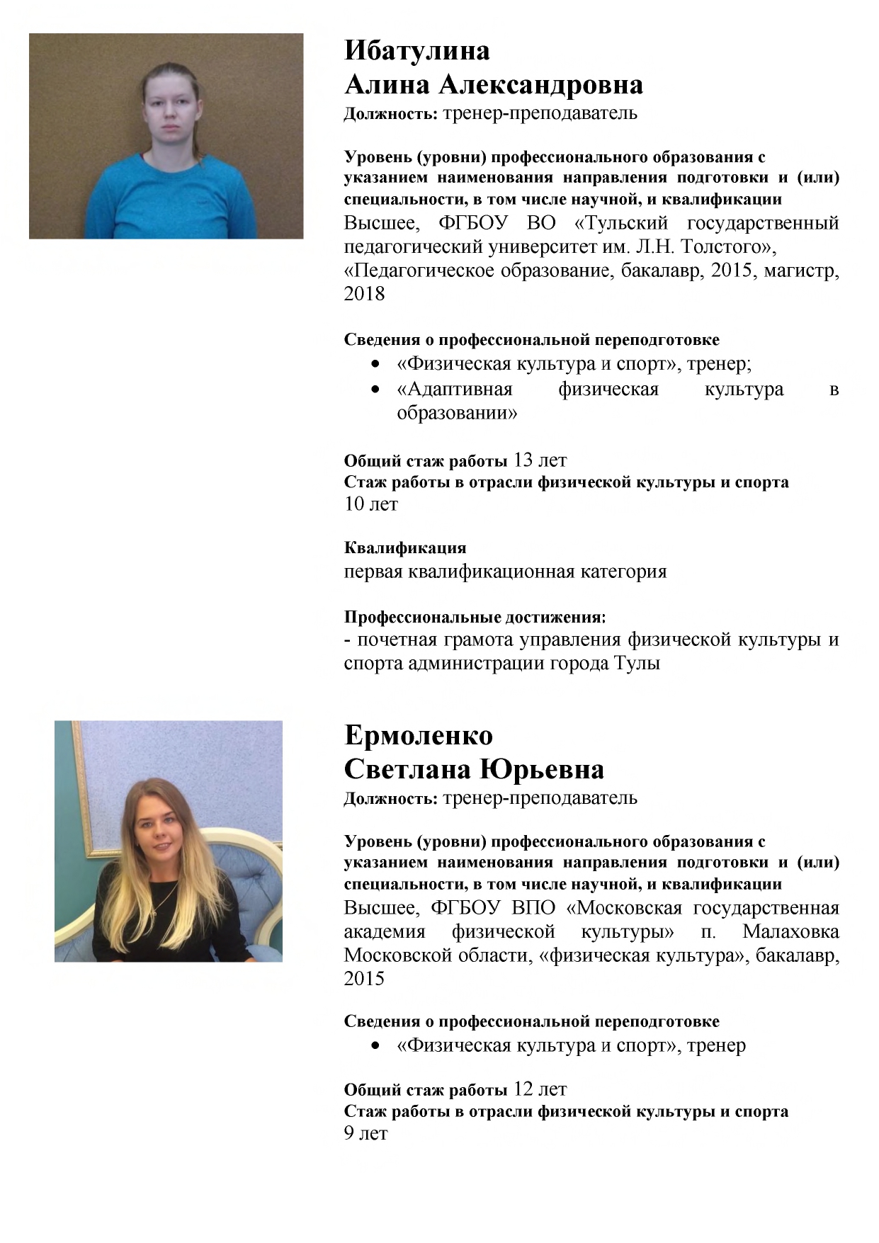 Тренерский состав