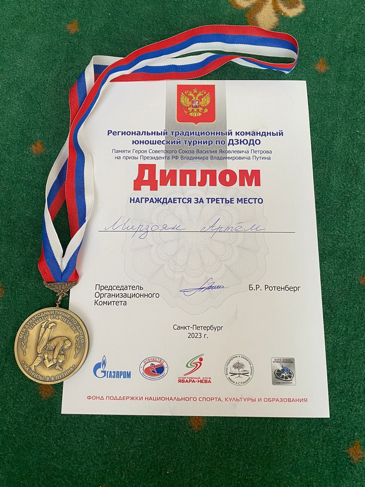 С 22 марта по 24 марта в Санкт-Петербурге состоялся традиционный межрегиональный командный юношеский турнир Памяти Героя Советского Союза В.Я. Петрова на призы Президента РФ В.В. Путина по дзюдо среди юношей 2006-2008 г.р.  В турнире принимали участие команды г. Санкт-Петербурга, г. Уфы, г. Вологды, г. Ростов-на- Дону, г. Рязани, г. Тулы, команда сборной Ленинградской области.