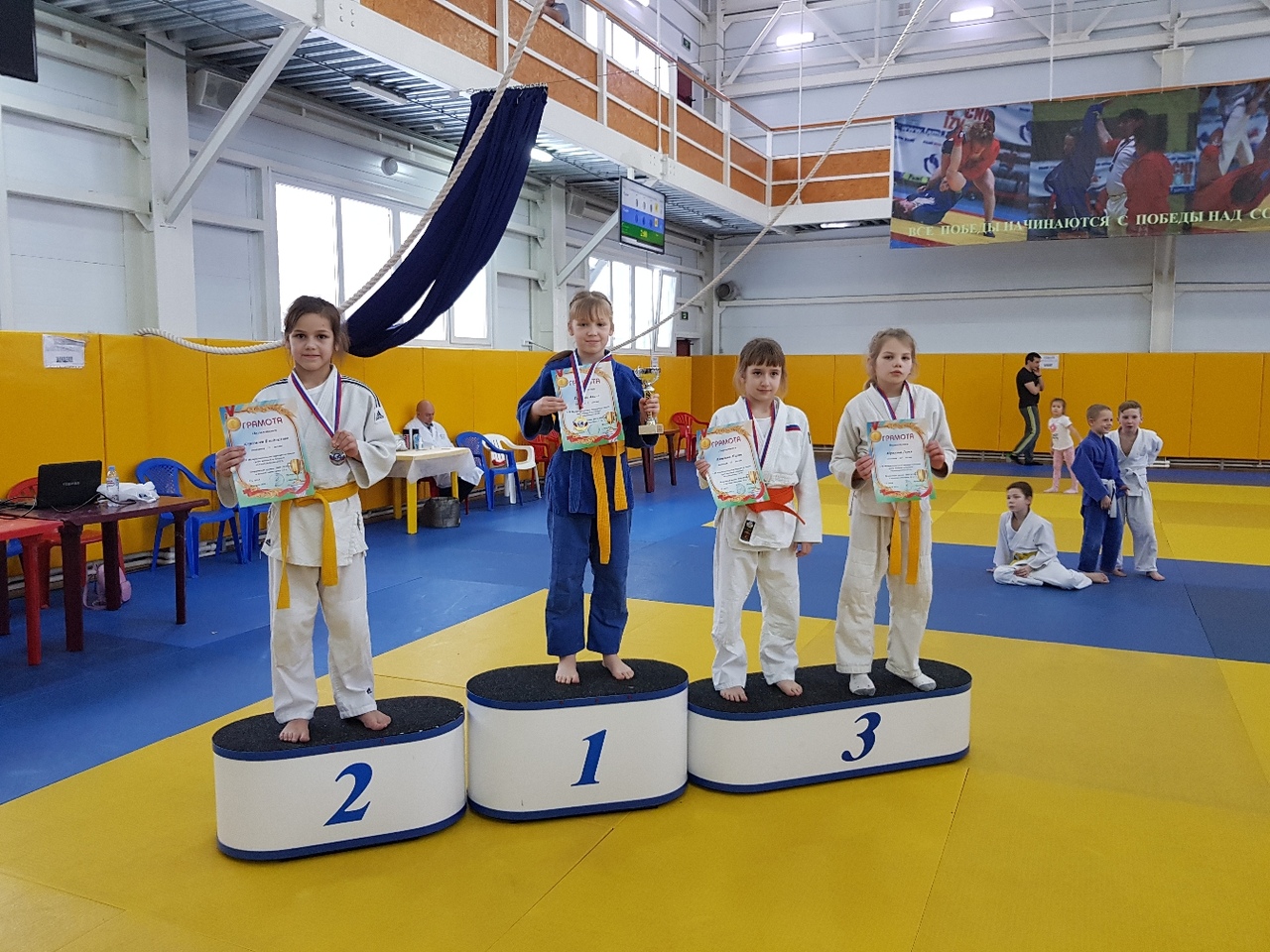 3 место: Дарья Абрамова (вес . к атегория 32 кг.), Сергей Осипов (вес. категория 32 кг.), Артем Мирзоян (вес. категория 35 кг.), Илья Барынин (вес. категория 38 кг.) и Тимофей Ефремов (вес. категория 38 кг.).
