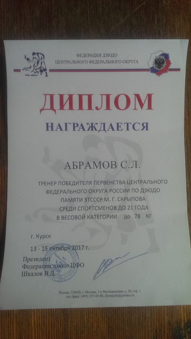 Поздравляем Абрамова С.Л. за подготовку спортсменки Екатерины Сазоновой к ЦФО России по дзюдо!!!