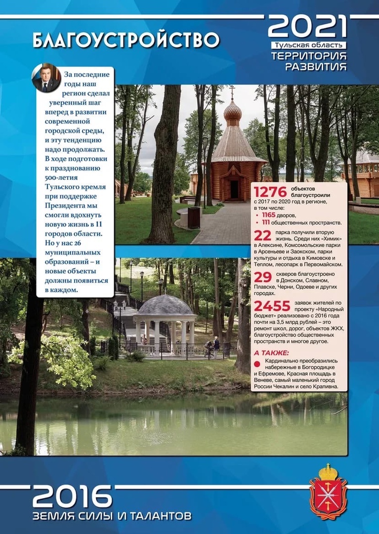 Продолжаем рассказывать о проекте «Тульская область-территория развития». Следующее направление – благоустройство.