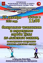 27 декабря в Туле пос. Косая гора (лыжероллерный центр «Веденино») состоятся открытые чемпионат и первенство города Тулы по лыжным гонкам, посвящённые открытию зимнего лыжного сезона.
