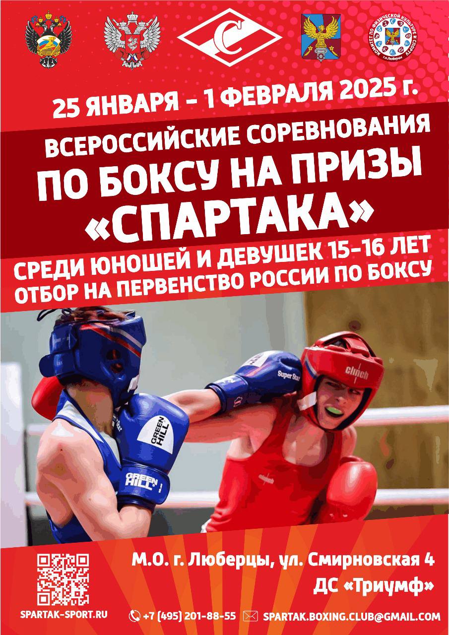 С 25 января по 2 февраля в г. Люберцы Московской области на базе Д/С «Триумф» проходят Всероссийские соревнования по боксу среди юношей и девушек 15-16 лет на призы «Спартака».
