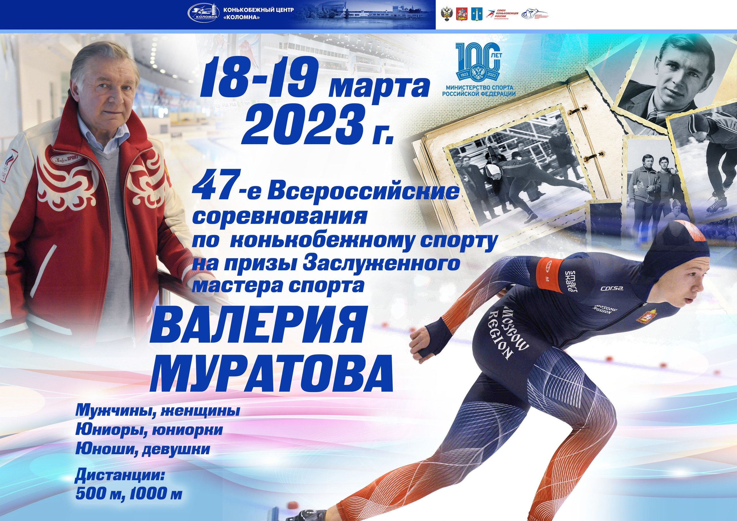 18-19 марта 2023 г. в Конькобежном центре «Коломна» пройдут 47-е Всероссийские соревнования по конькобежному спорту «На призы Заслуженного мастера спорта Валерия Алексеевича Муратова».