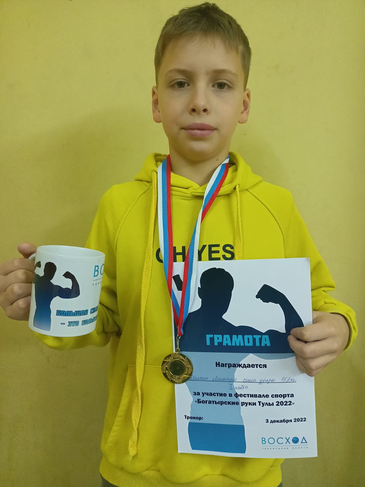 3 декабря 2022г. прошёл спортивно-патриотический фестиваль «Богатырские руки Тулы 2022». Воспитанник МБУ СШОР «Восток» Демин Михаил занял 1 место.